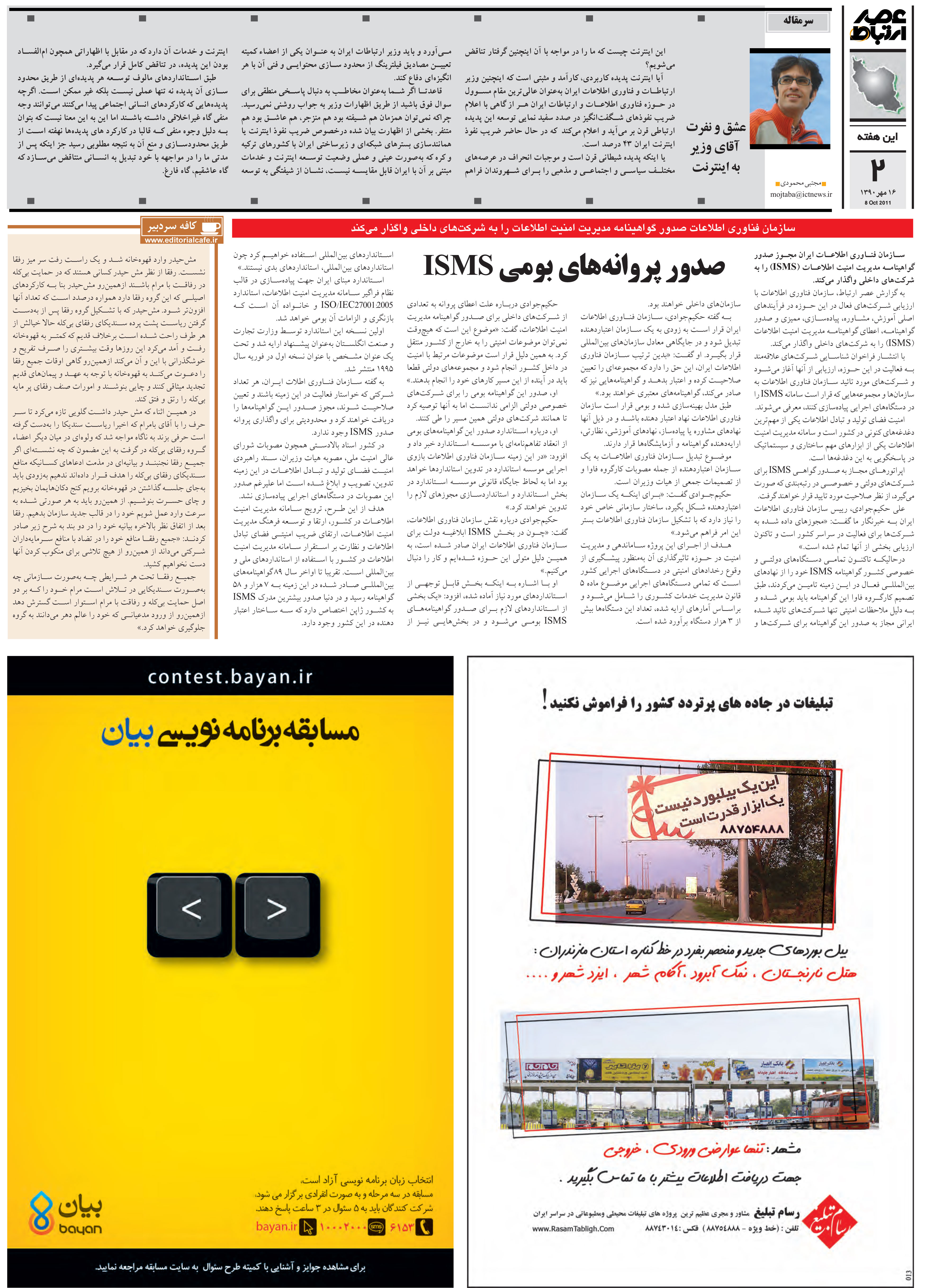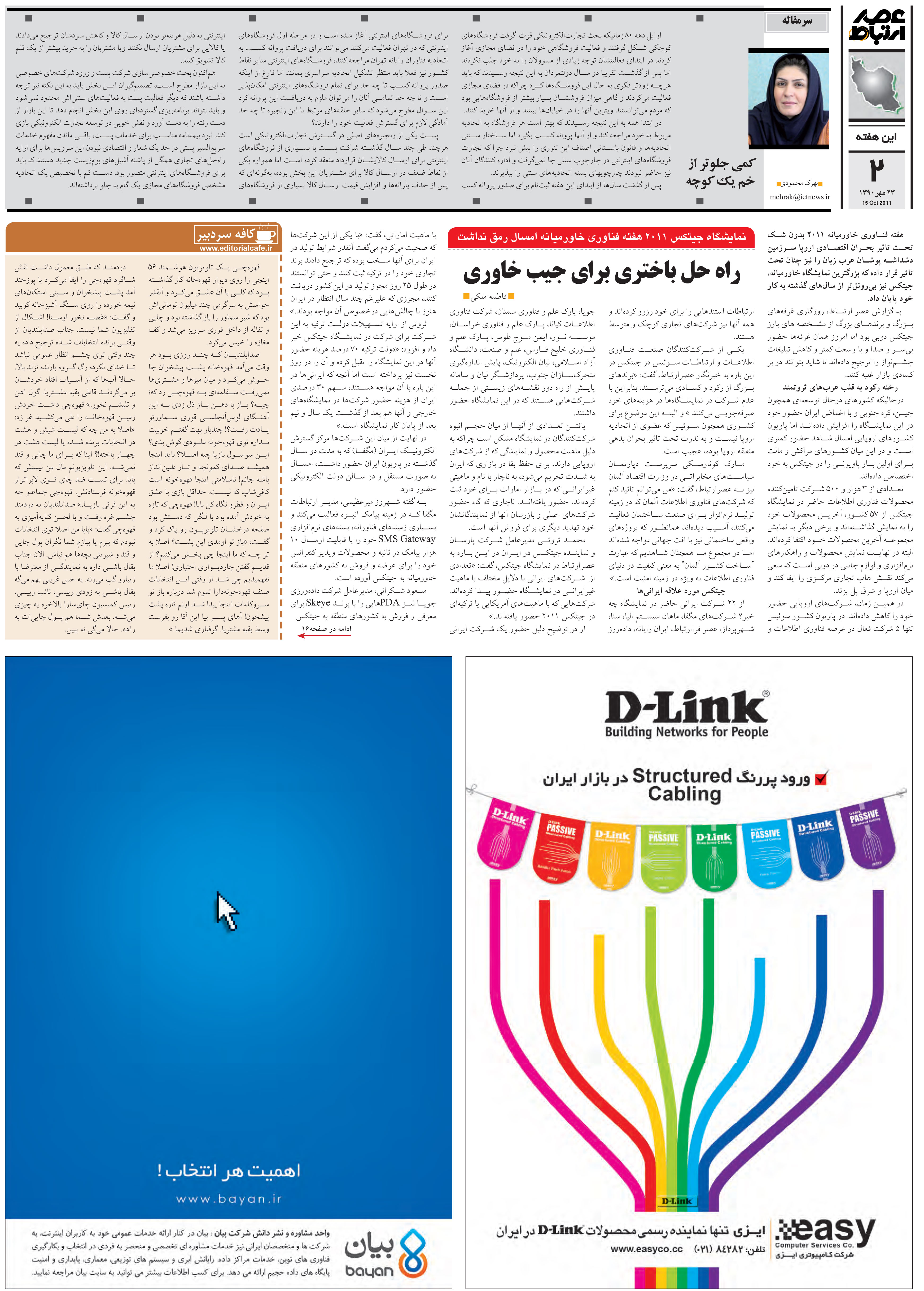 (هفته نامه عصر ارتباط - 30 مهر 1390 - شماره 428 - صفحه 2)