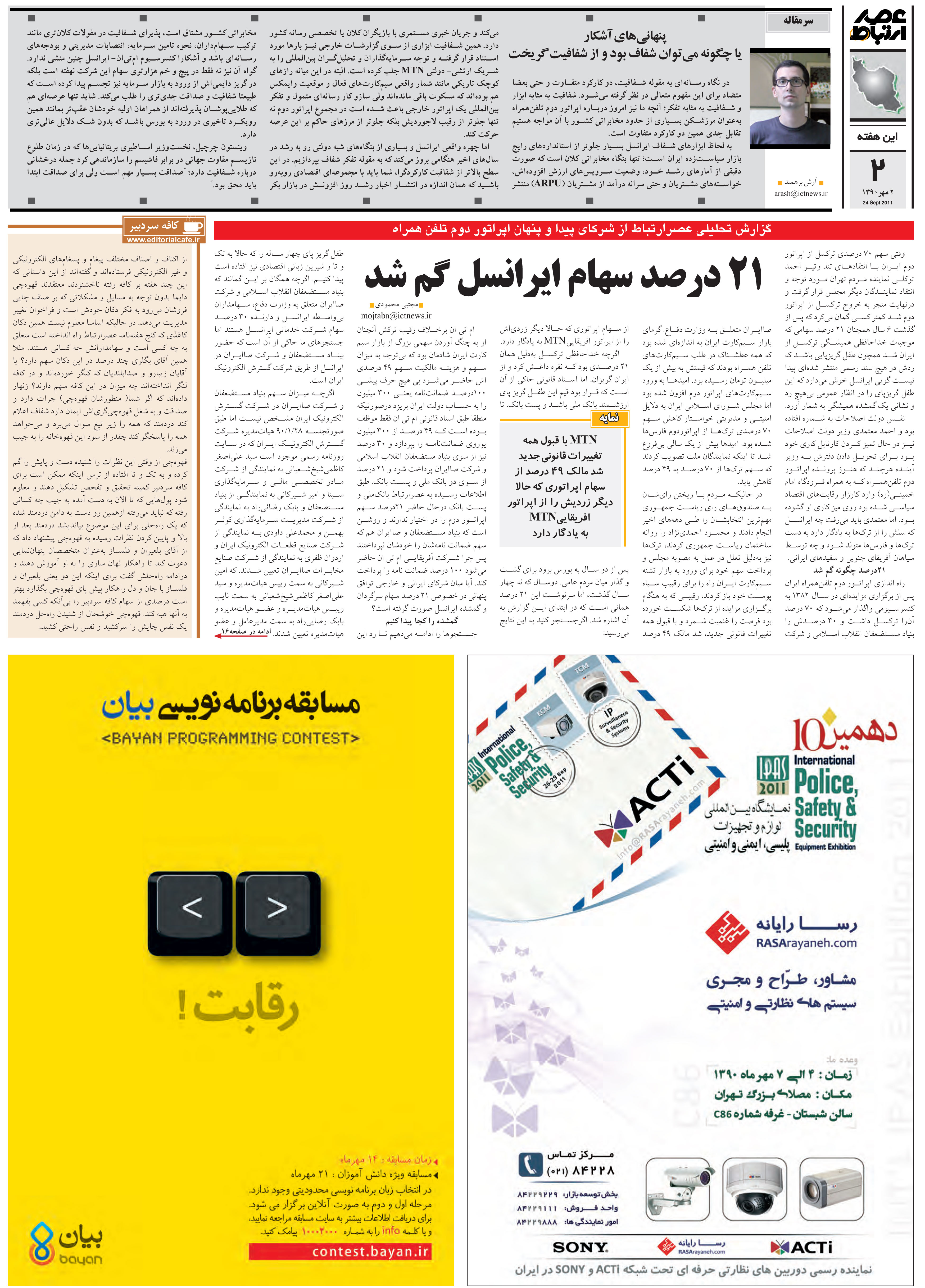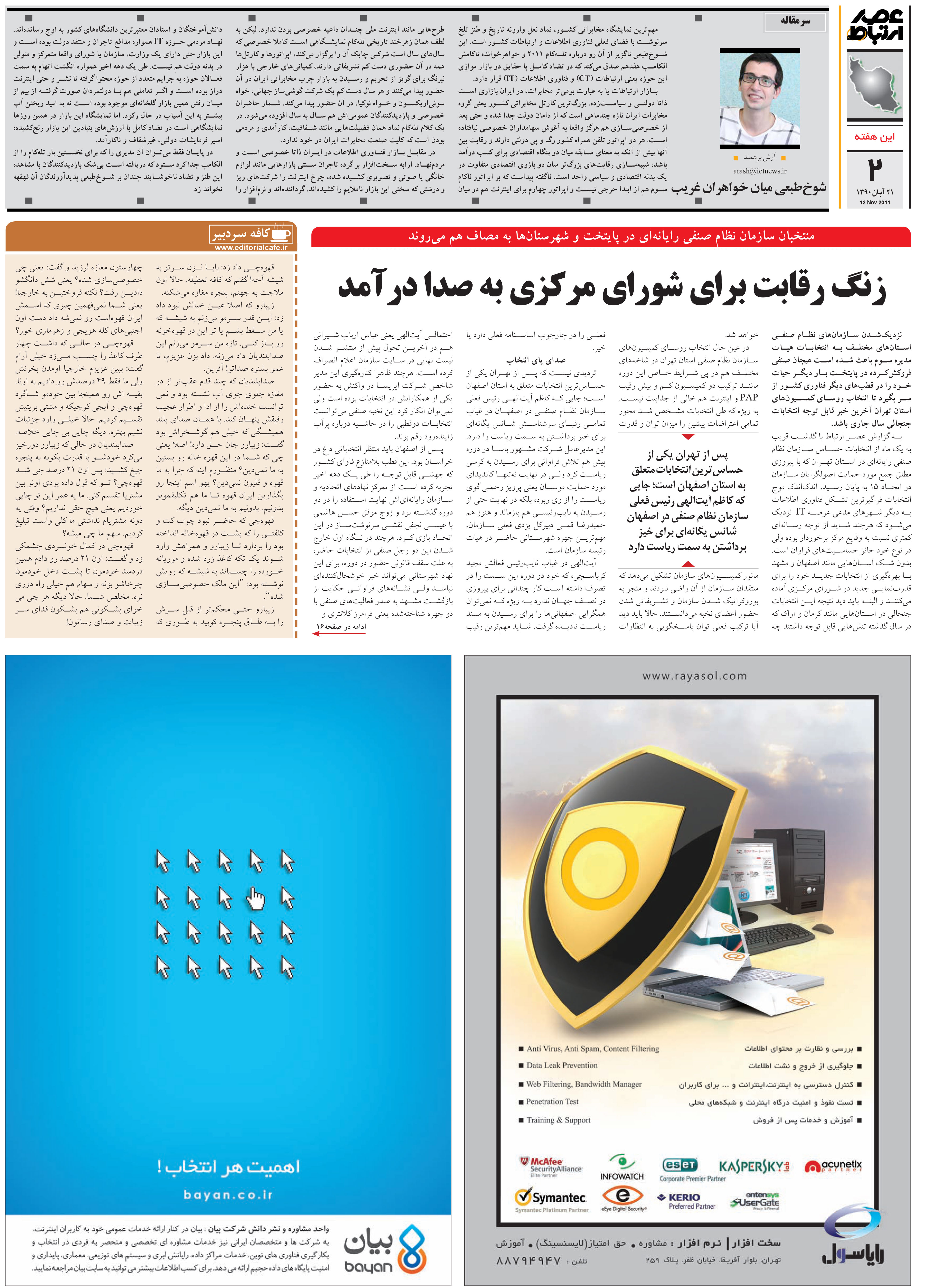 (هفته نامه عصر ارتباط - 21 آبان 1390 - شماره 431 - صفحه 2)