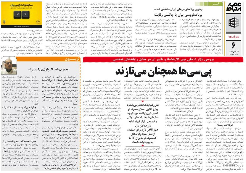 (هفته نامه عصر ارتباط - 21 آبان 1390 - شماره 431 - صفحه 6)