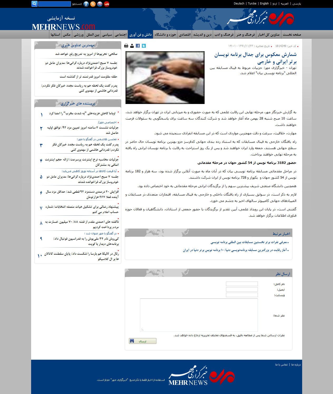 مهر: شمارش معکوس برای جدال برنامه نویسان برتر ایرانی و خارجی