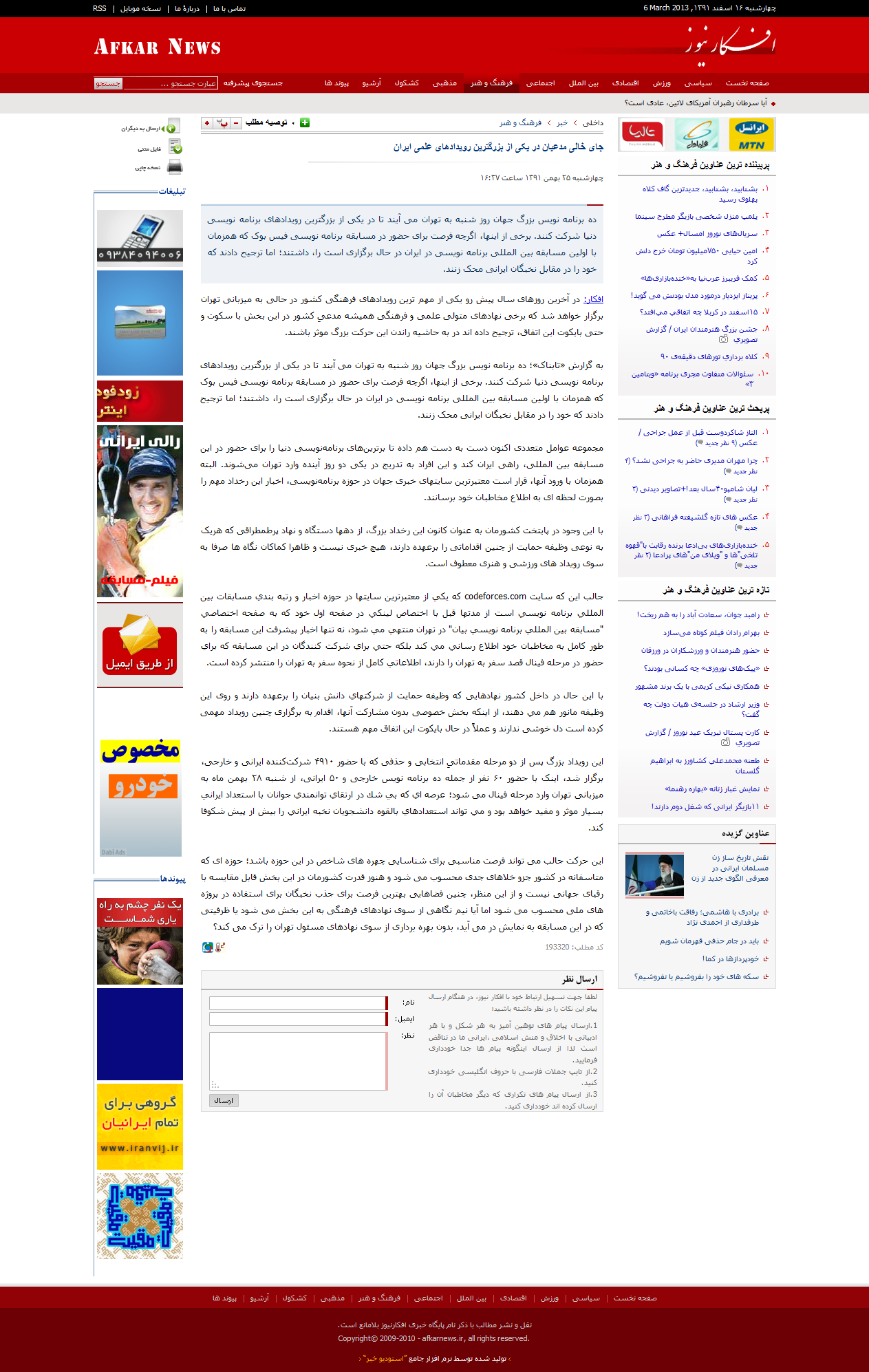جالب این که سایت codeforces.com که یکی از معتبرترین سایتها در حوزه اخبار و رتبه بندی مسابقات بین المللی برنامه نویسی است از مدتها قبل با اختصاص لینکی در صفحه اول خود که به صفحه اختصاصی "مسابقه بین المللی برنامه نویسی بیان" در تهران منتهی می شود، نه تنها اخبار پیشرفت این مسابقه را به طور کامل به مخاطبان خود اطلاع رسانی می کند بلکه حتی برای شرکت کنندگان در این مسابقه که برای حضور در مرحله فینال قصد سفر به تهران را دارند، اطلاعاتی کامل از نحوه سفر به تهران را منتشر کرده است.