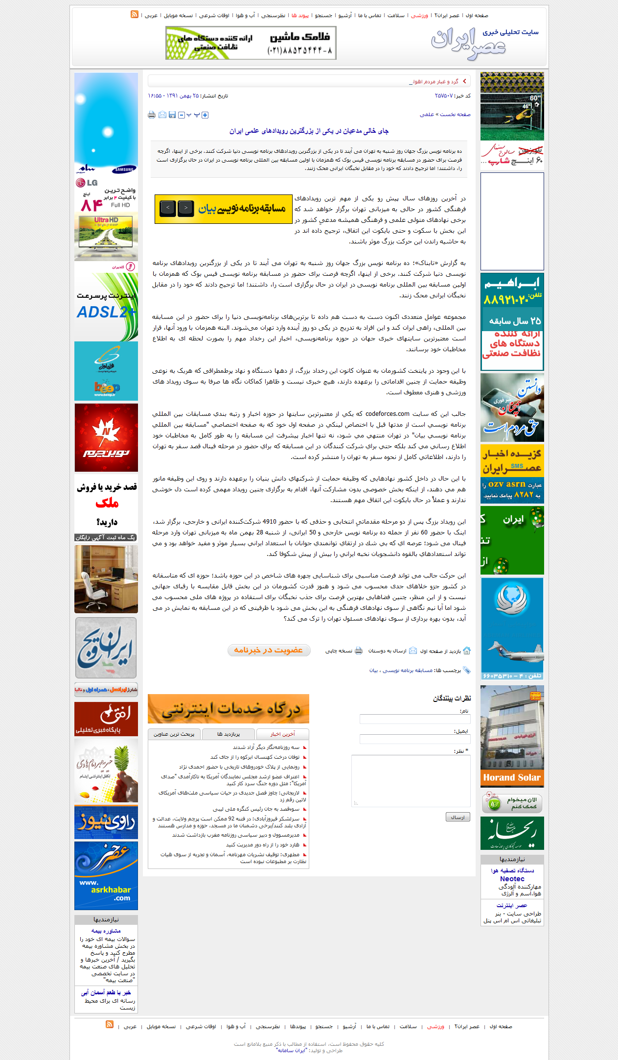 جالب این که سایت codeforces.com که یکی از معتبرترین سایتها در حوزه اخبار و رتبه بندی مسابقات بین المللی برنامه نویسی است از مدتها قبل با اختصاص لینکی در صفحه اول خود که به صفحه اختصاصی "مسابقه بین المللی برنامه نویسی بیان" در تهران منتهی می شود، نه تنها اخبار پیشرفت این مسابقه را به طور کامل به مخاطبان خود اطلاع رسانی می کند بلکه حتی برای شرکت کنندگان در این مسابقه که برای حضور در مرحله فینال قصد سفر به تهران را دارند، اطلاعاتی کامل از نحوه سفر به تهران را منتشر کرده است.