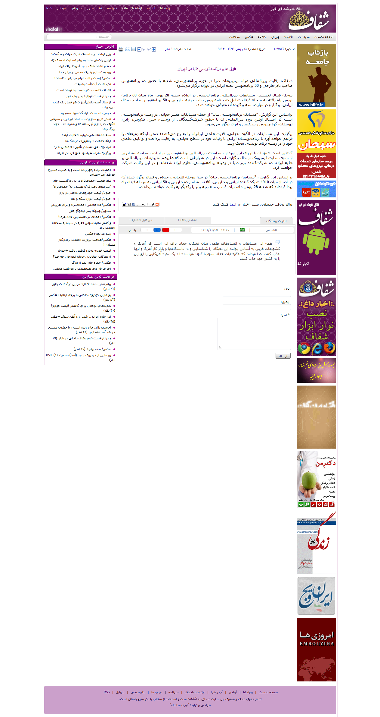 مرحله فینال نخستین مسابقات بینالمللی برنامهنویسی در ایران، شنبه 28 بهمن ماه میان 60 برنامه نویس راه یافته به مرحله فینال شامل ده برنامهنویس صاحب رتبه خارجی و 50 برنامهنویس صاحب مدال ایرانی، برگزار و در نهایت، سه برگزیده آن معرفی خواهد شد.