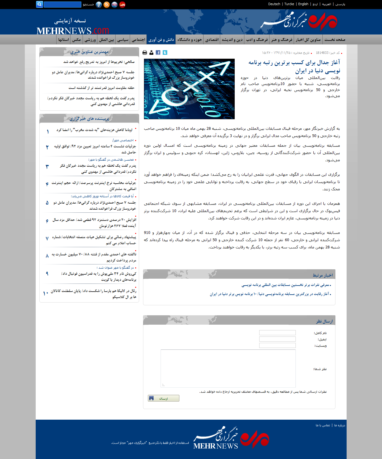 مهر: آغاز جدال برای کسب برترین رتبه برنامه نویسی دنیا در ایران