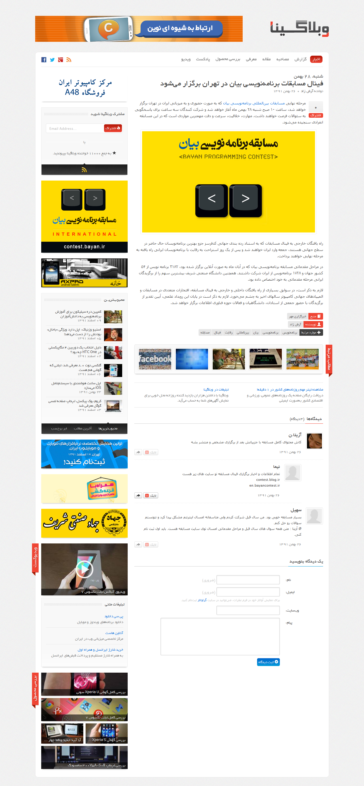 وبلاگینا: فینال مسابقات برنامهنویسی بیان در تهران برگزار میشود