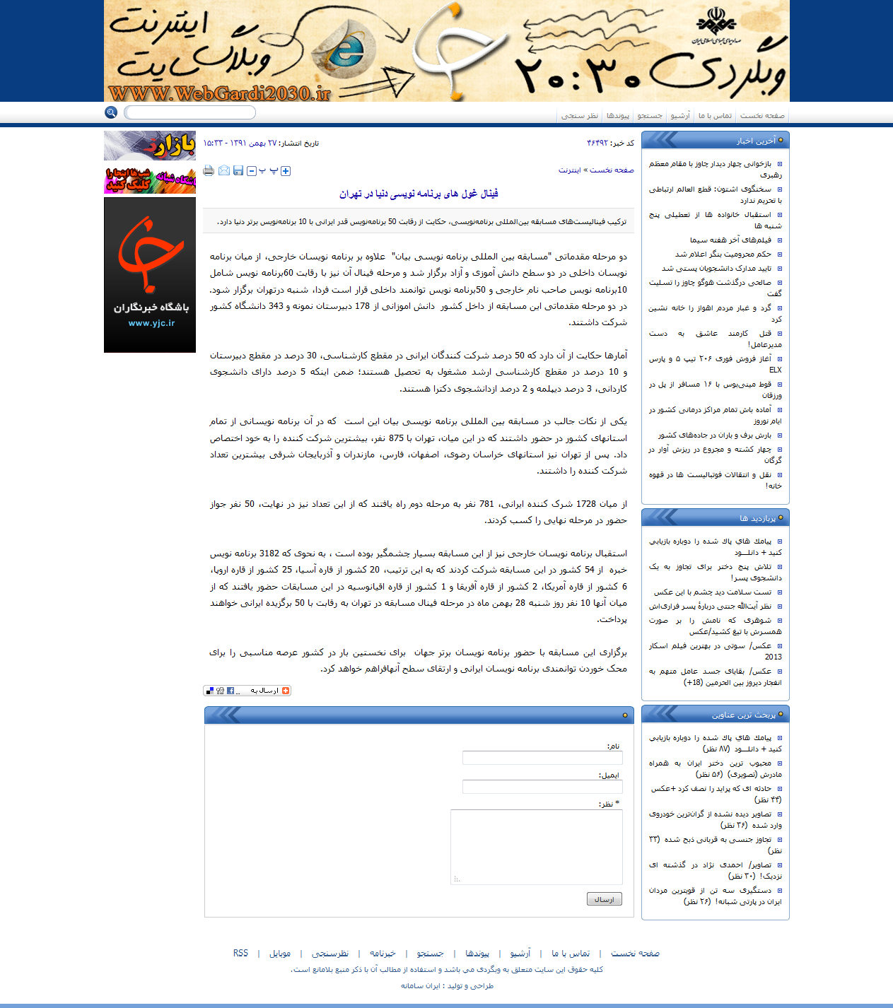 وبگردی 20:30 : فینال غول های برنامه نویسی دنیا در تهران