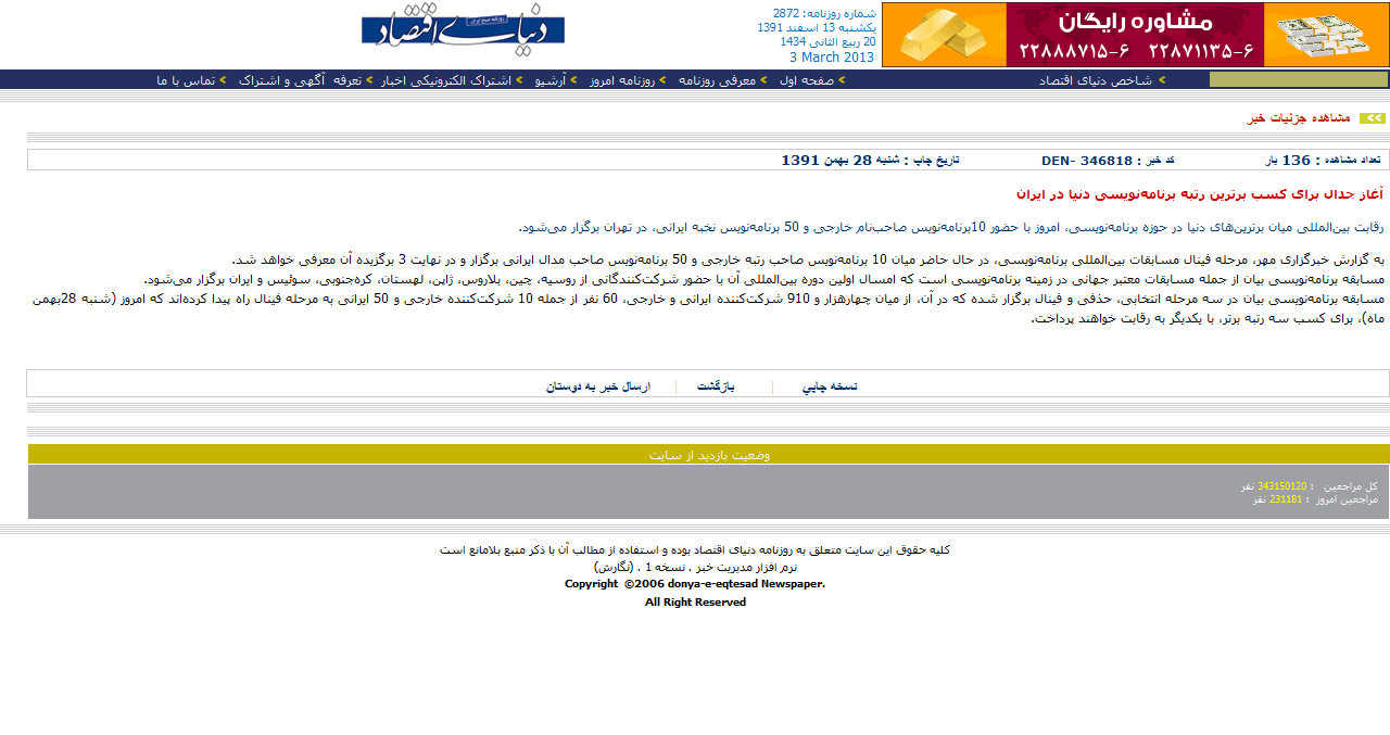 دنیای اقتصاد: آغاز جدال برای کسب برترین رتبه برنامهنویسی دنیا در ایران