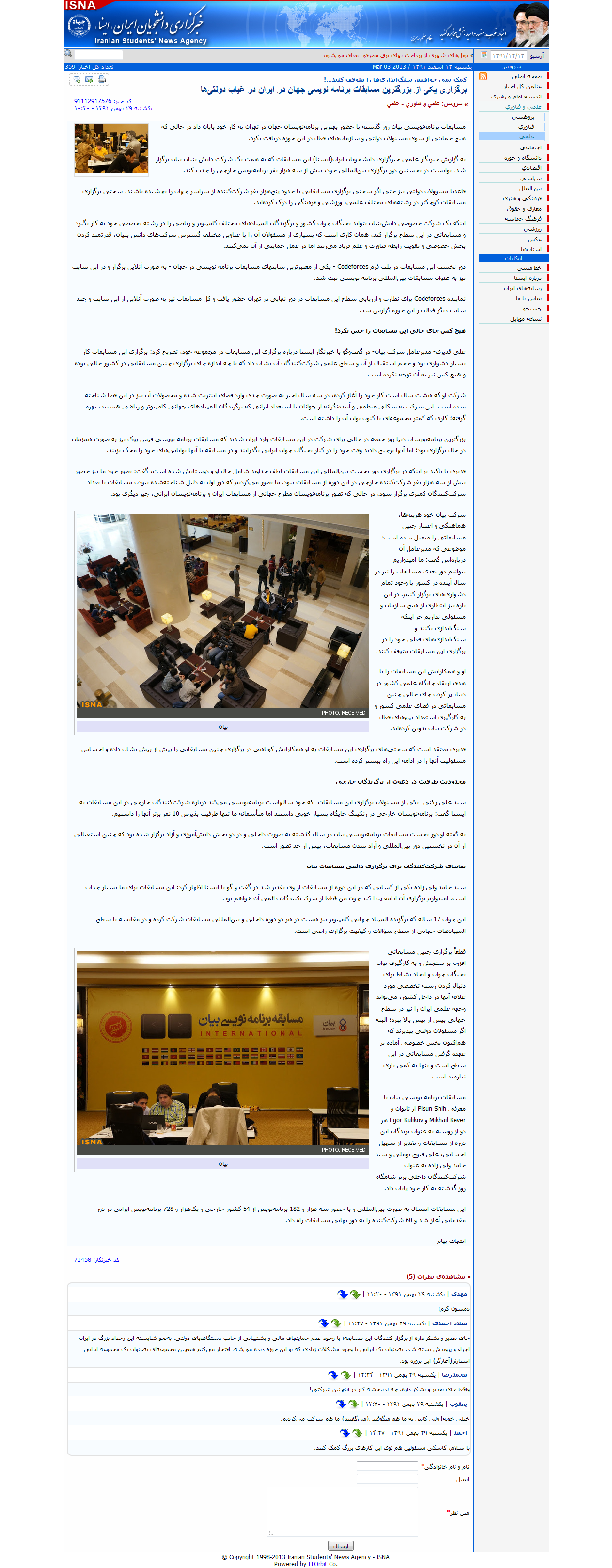 ایسنا: برگزاری یکی از بزرگترین مسابقات برنامه نویسی جهان در ایران در غیاب دولتیها