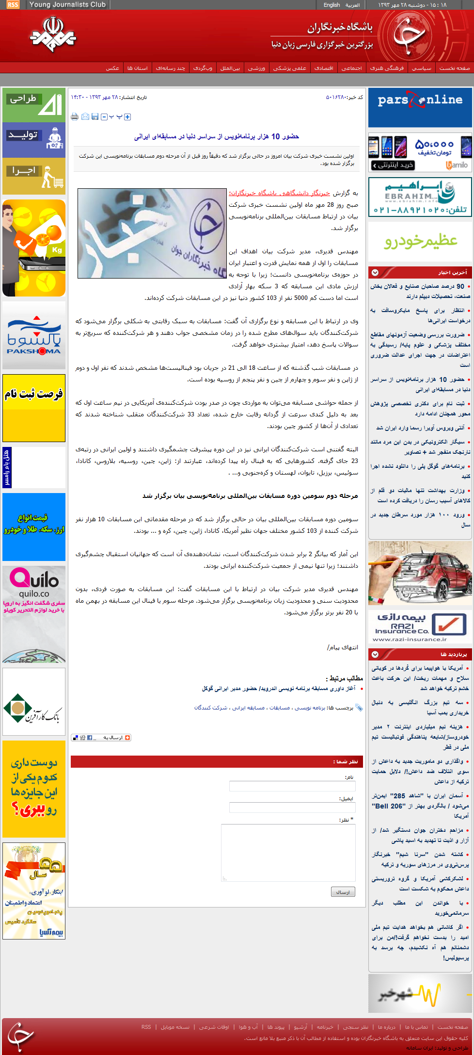 باشگاه خبرنگاران: حضور 10 هزار برنامهنویس از سراسر دنیا در مسابقهای ایرانی