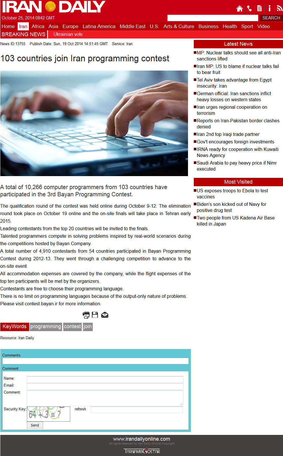 irandaily: 103 countries join Iran programming contest