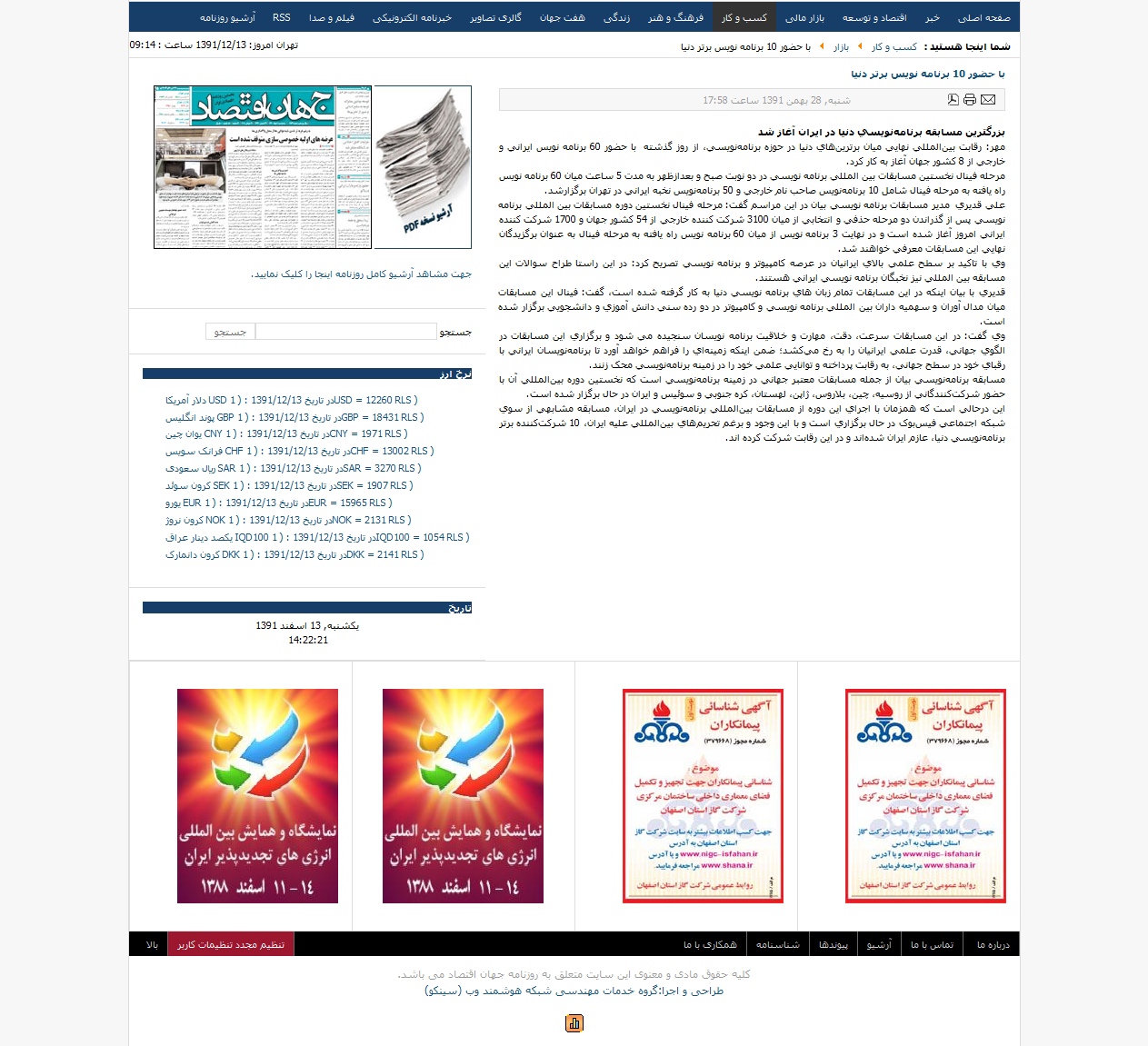 جهان اقتصاد: بزرگترین مسابقه برنامهنویسی دنیا در ایران آغاز شد