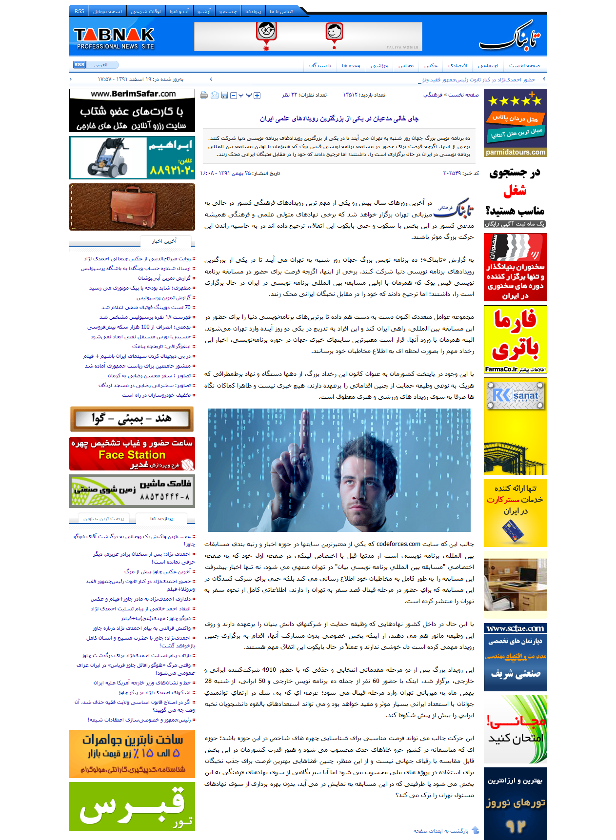 روزنامه ایران: فینال مسابقه بینالمللی برنامه نویسی در تهران
