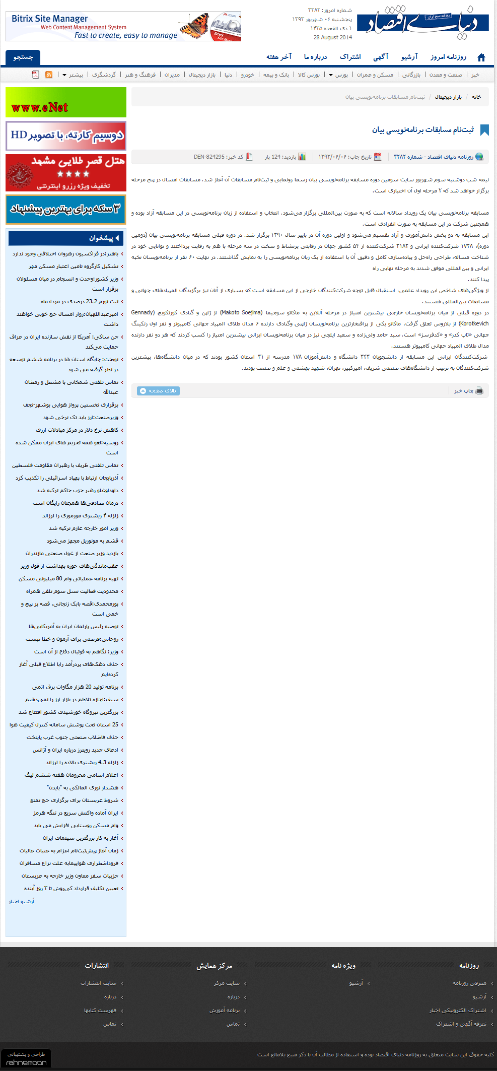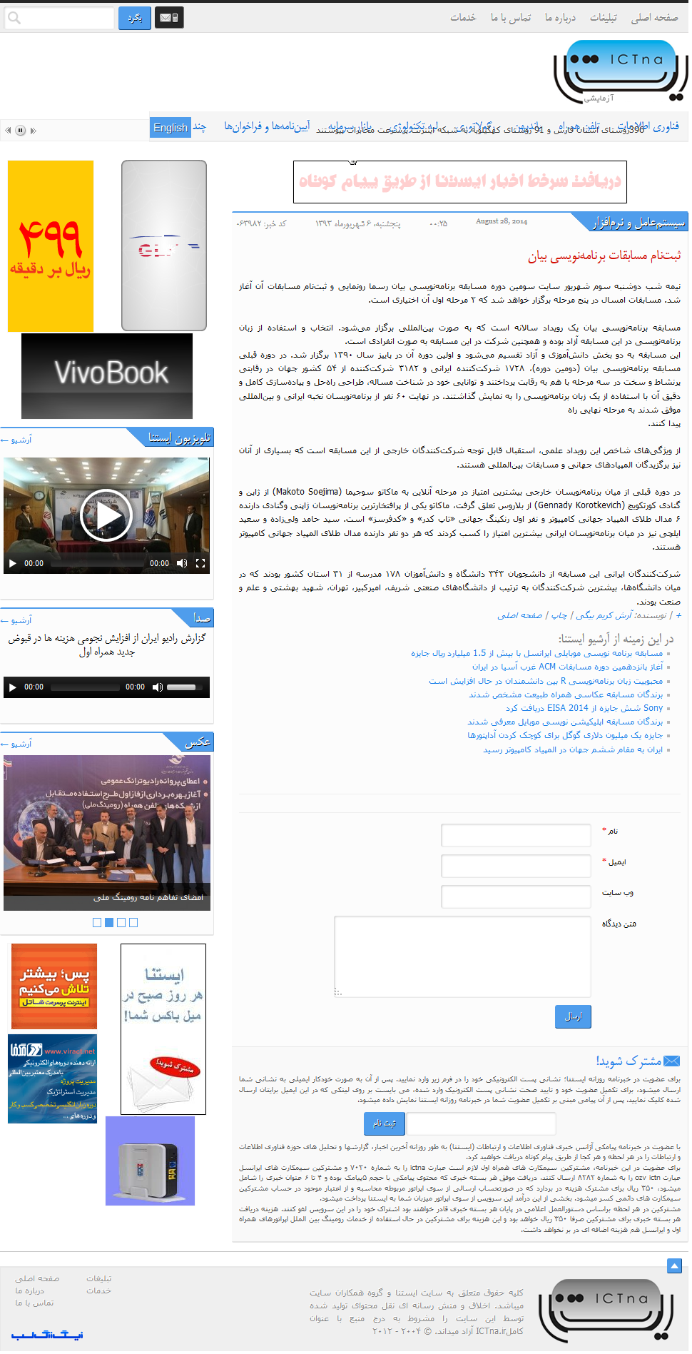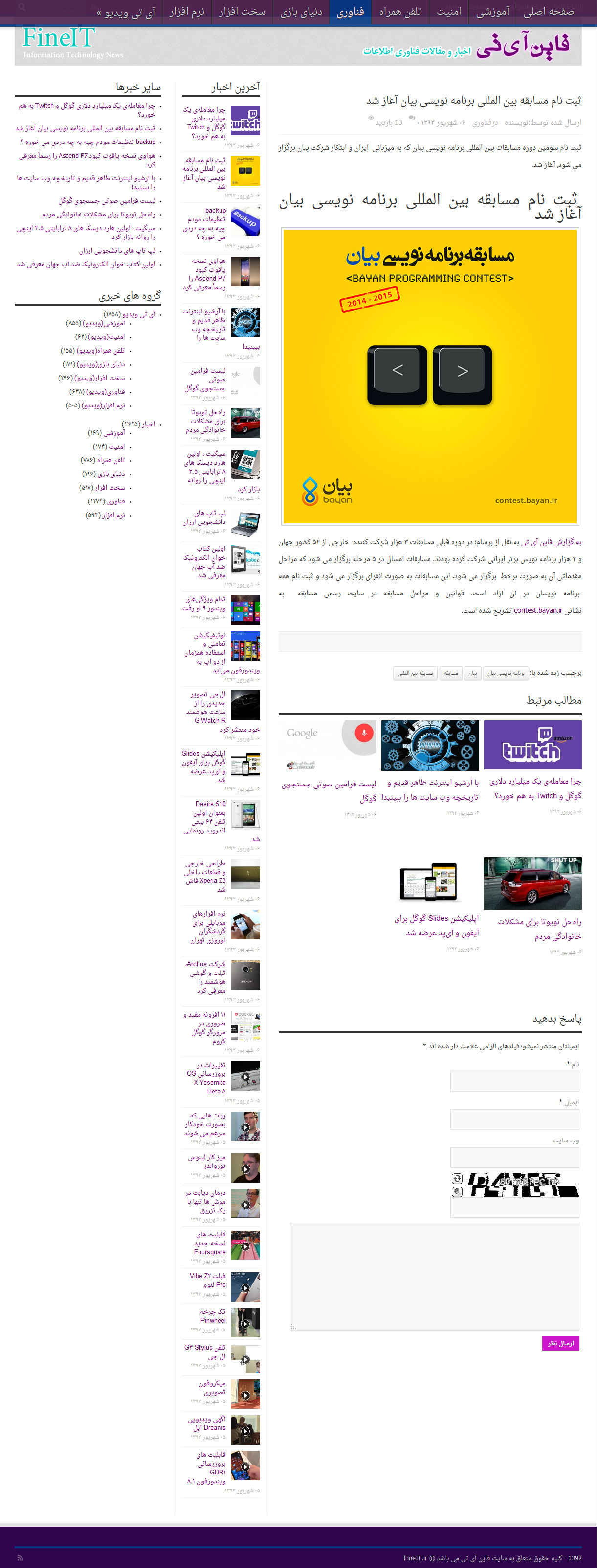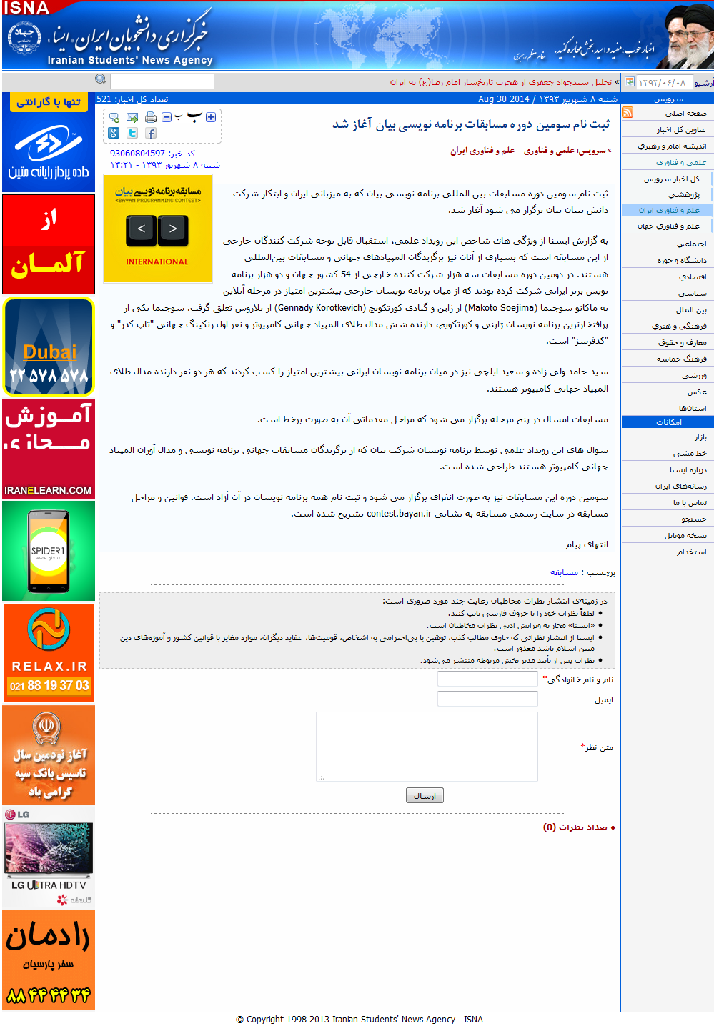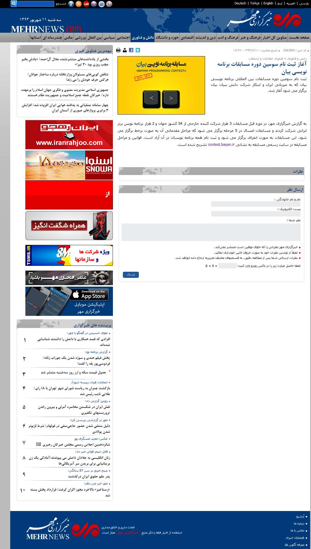 سینا: مسابقه بین المللی برنامه نویسی «بیان» برگزار می شود.