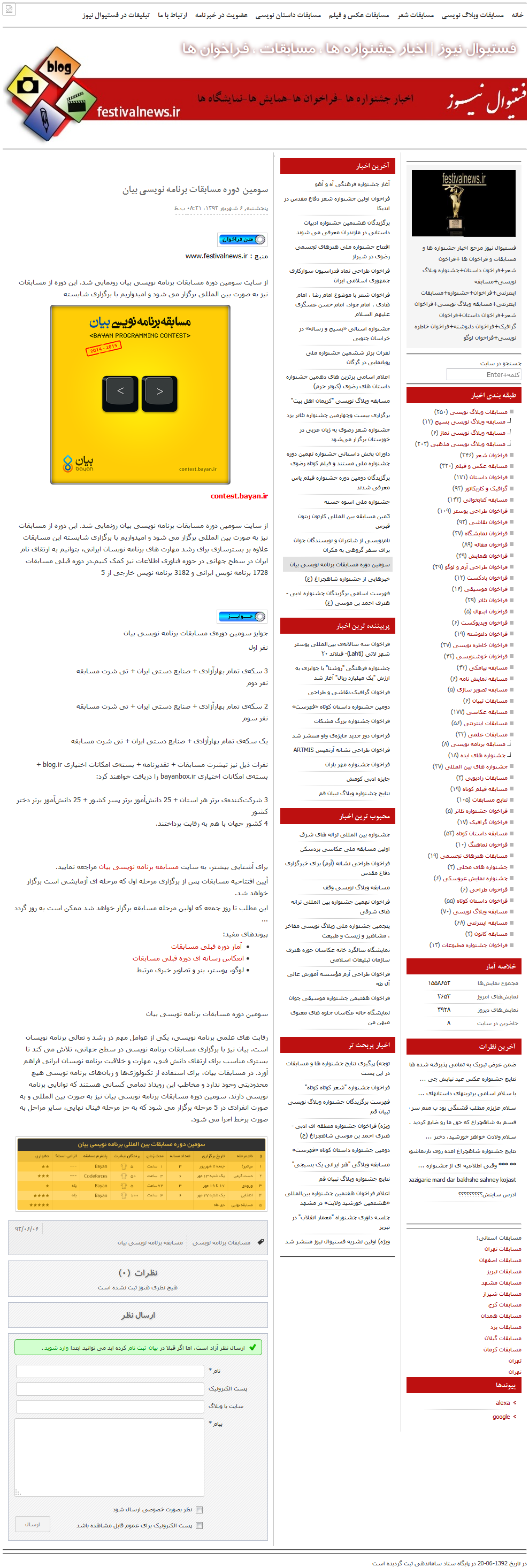 مسوول برگزاری مسابقه بین المللی برنامه نویسی بیان خاطرنشان کرد: انتخاب زبان برنامه نویسی در این مسابقه انفرادی آزاد است و سوال های آن توسط برنامه نویسان شرکت بیان که از برگزیدگان مسابقات جهانی برنامه نویسی و مدال آوران المپیاد جهانی کامپیوتر هستند طراحی شده است و علاقمندان می توانند با مراجعه به سایت مسابقات به نشانی contest.bayan.ir در مسابقات این دوره شرکت کنند.