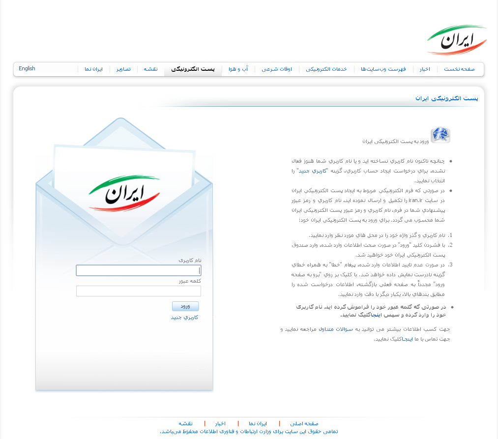 2. سرویس پست الکترونیکی به آدرس mail.iran.ir