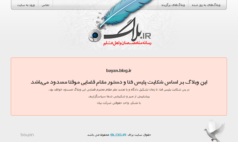 وبلاگ رسمی شرکت بیان به نشانی bayan.blog.ir که از ساعت 11 صبح، یک شنبه 4 خرداد مسدود شده بود، با پیگیری های واحد حقوقی شرکت پس از گذشت 7 روز در ساعت 16:30 یکشنبه 11 خرداد ماه سال 93 رفع مسدودیت شد و مجددا در دسترس عموم قرار گرفت.